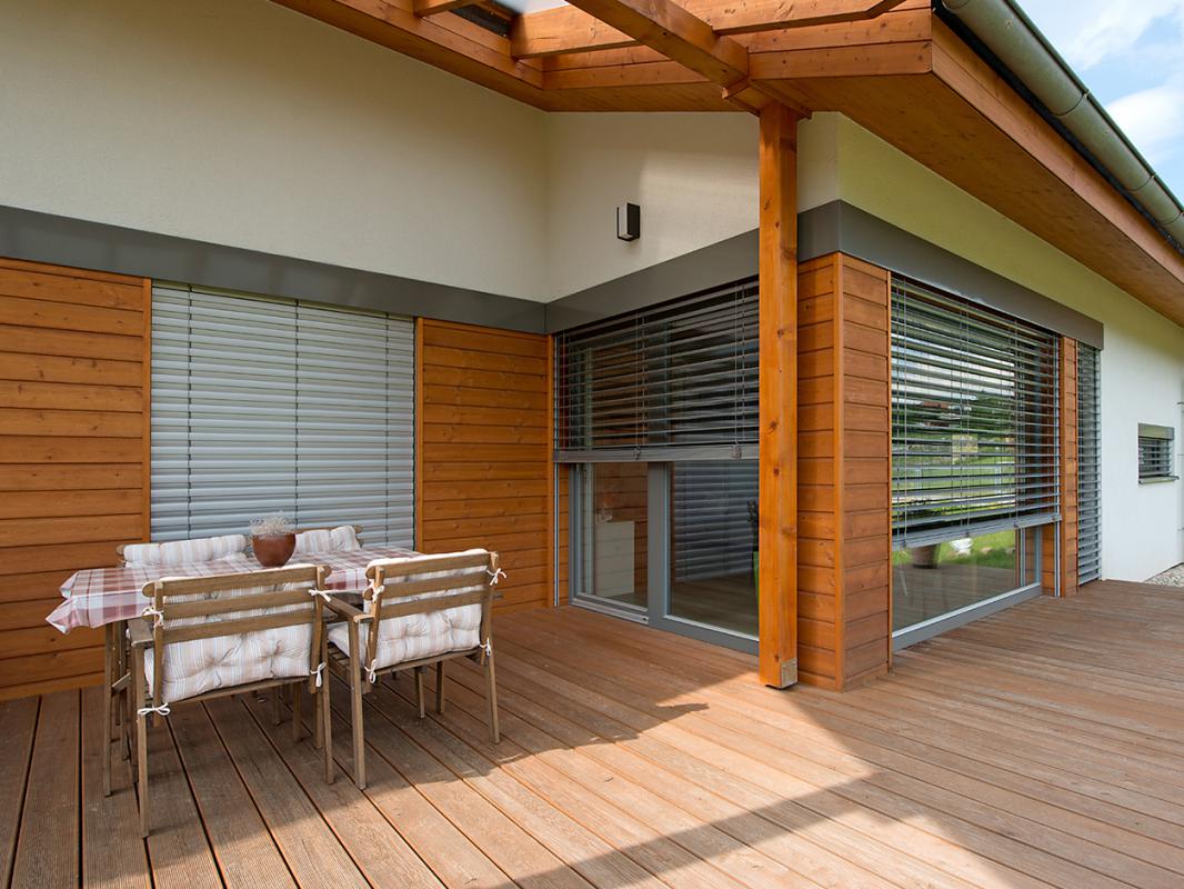 Venkovní rolety můžete doplnit o integrovanou síť proti hmyzu (je umístěna společně s roletou v jednom boxu). Zároveň se ve schránce nacházejí dvě hřídele, takže lze síť ovládat naprosto nezávisle na roletě. Barvu lamel u rolet můžete vybírat z palety odstínů. Najdete tu základní barvy jako bílou, šedou, stříbrnou a hnědou nebo také imitace dřeva. Maximální šířka venkovní rolety je dle zvoleného typu lamely až 4 m a zastíní plochu až 8,5 m².